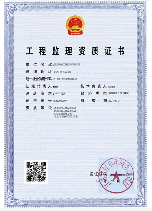 近日,江蘇燕寧工程咨詢(xún)有限公司成功獲得住建部機電安裝工程監理乙級資質(zhì)。新資質(zhì)的取得,使公司資質(zhì)得到進(jìn)一步提升,領(lǐng)域得到進(jìn)一步擴展,業(yè)務(wù)范圍得到進(jìn)一步延伸,極大提高公司資源統籌運用能力,使各業(yè)務(wù)的整...