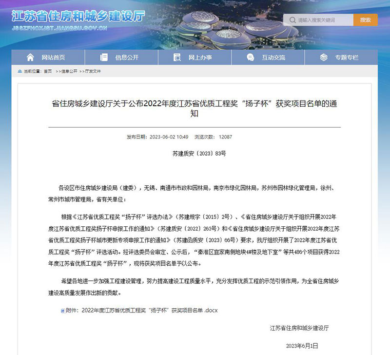 近日,江蘇省住房和城鄉建設廳下發(fā)《關(guān)于公布2022年度江蘇省優(yōu)質(zhì)工程獎“揚子杯”獲獎項目名單的通知》,其中燕寧咨詢(xún)承擔監理業(yè)務(wù)的淮安S237高架快速路徐楊路-廣州路段及進(jìn)站匝道工程(以下簡(jiǎn)稱(chēng)淮安S...